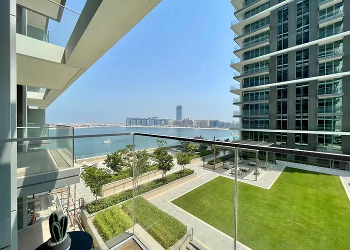 Elegant & Luxurious 1Br Apartment In Beach Isle Dubai villa bevindt zich in de wijk Palm Jumeirah van Dubai, binnen circa 10-minuten rijafstand van het Aquaventure Waterpark, en beschikt over een privézwembad waar gasten kunnen ontspannen.